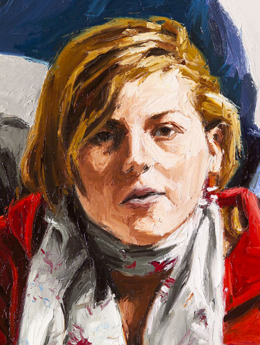 When one looks closely at this detailed magnification of Bo Bakker’s portrait shown left, what appeared in the first instance to be a realistic and very finely painted portrait is in fact, on closer inspection, more of an impressionistic painting.